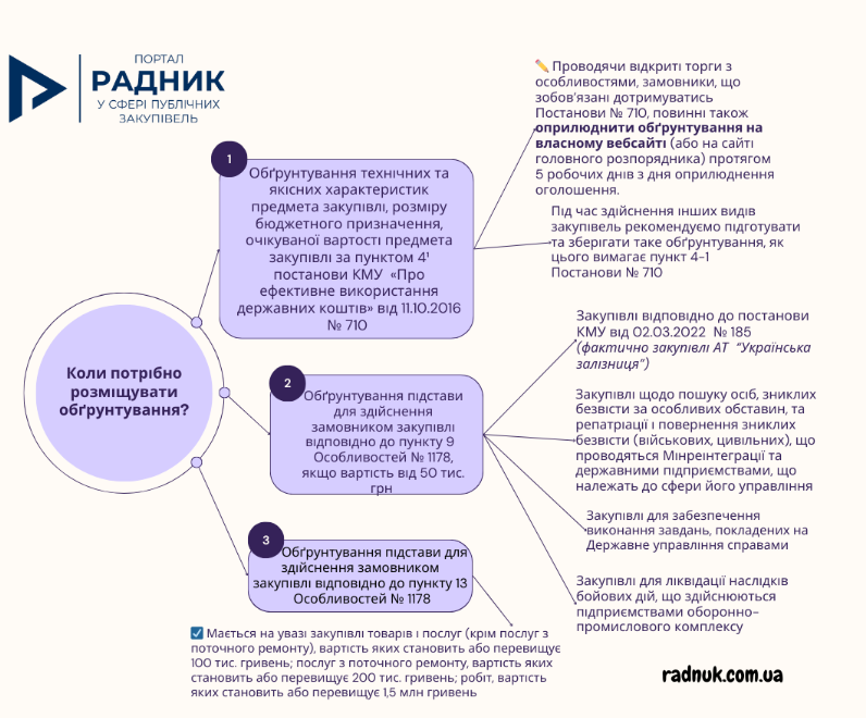 Наостанок зафіксуємо, коли та згідно з якими вимогами потрібно розміщувати чи просто зберігати обґрунтування закупівлі: