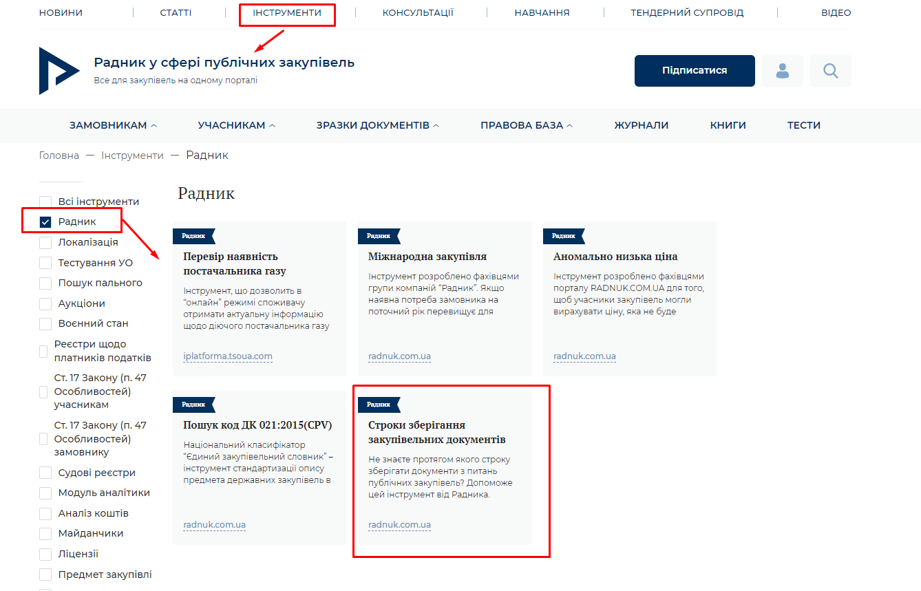 Гарна новина! Розібратись зі строками зберігання вам допоможе інструмент від порталу Радник, який розміщений у розділі «Інструменти»: