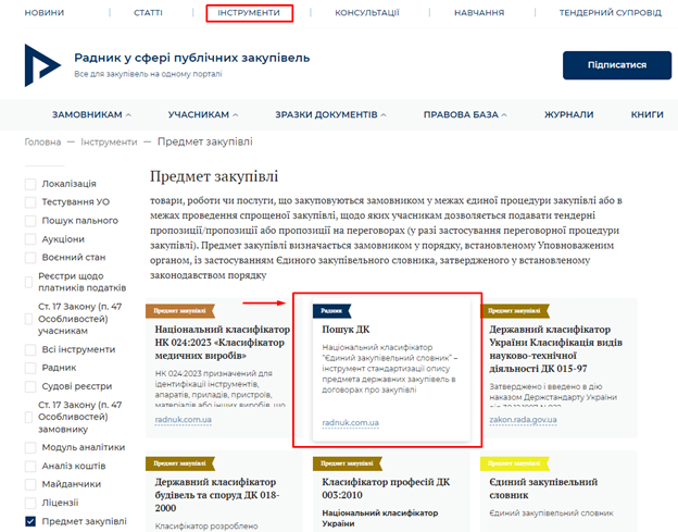 Наказом Міністерства розвитку економіки, торгівлі та сільського господарства від 15.04.2020 № 708 «Про затвердження Порядку визначення предмета закупівлі» визначено: