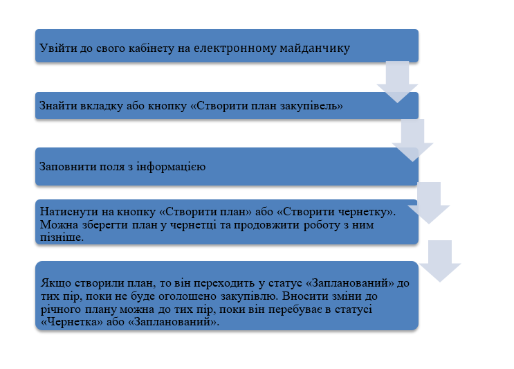 Інструкцію з оприлюднення річного плану закупівель та змін до нього на авторизованому електронному майданчику можна зобразити схематично, як на малюнку нижче.