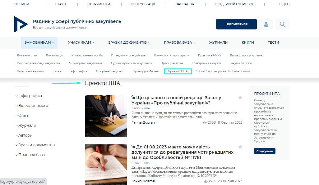 Якщо вам цікаво дізнаватися про зміни в нормативно-правових актах, які стосуються публічних закупівель та які плануються до затвердження, ознайомтеся з розділом «Проєкти НПА».
