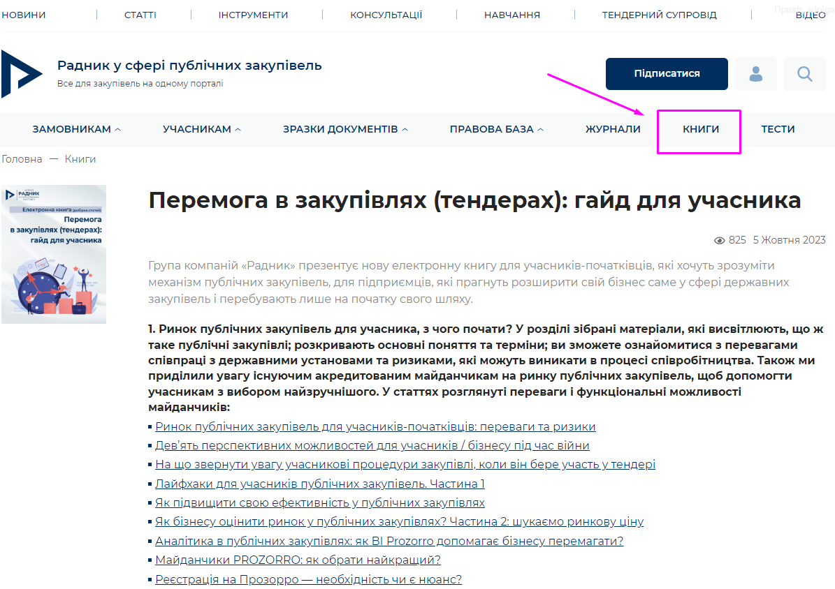 Більше корисної інформації для учасників закупівель ви знайдете в електронній книзі «Перемога в закупівлях (тендерах): гайд для учасника»: