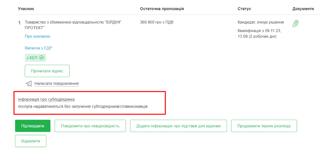 - коли залучення субпідрядників/співвиконавців відбувається для підтвердження відповідності кваліфікаційним критеріям учасника тендеру.