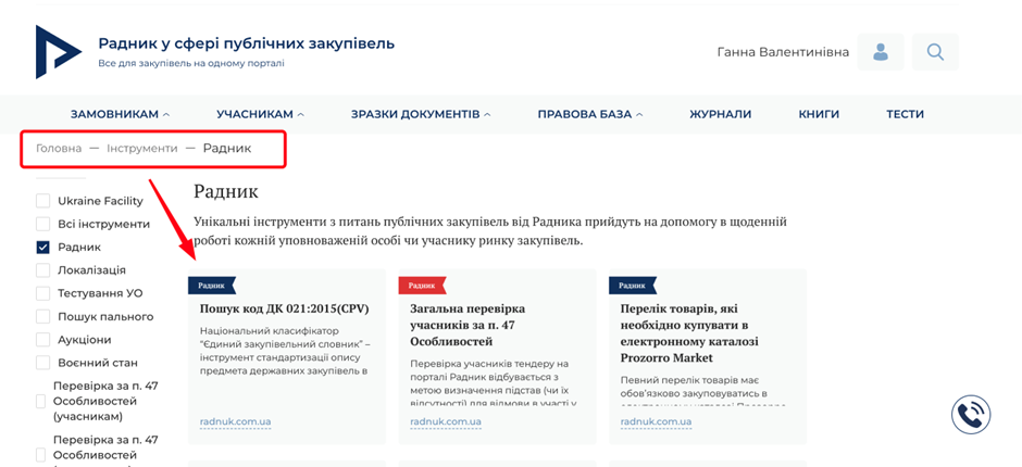 Нагадуємо, що на порталі Радник кожному авторизованому користувачу доступні інструменти порталу, зокрема автоматизований пошук ДК: